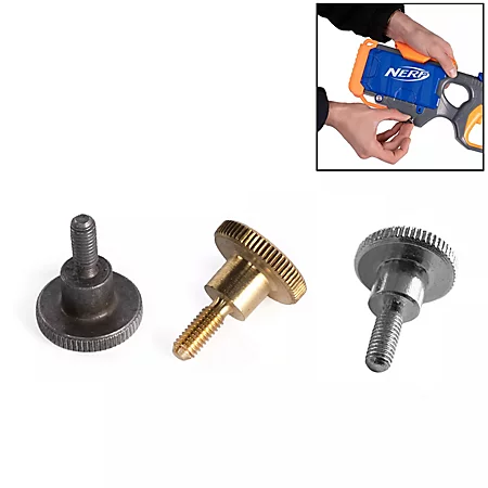 Diese sehr praktische Daumenschraube, ersetzt die vorhandenen (langweiligen) Schrauben für die Batterieklappe am Blaster. Im Handumdrehen lassen sich die Schrauben austauschen. Obendrein sehen die auch noch richtig gut aus. Für die neuen Schrauben brauchst du auch kein Werkzeug mehr. Ganz einfach mit der Hand drehen, reicht schon aus.