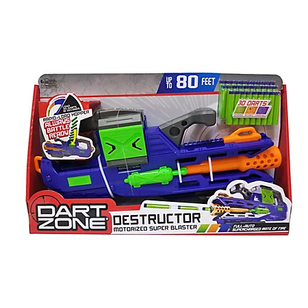 Dieser Blaster ist perfekt, um aus der Hüfte abgefeuert zu werden. Mit der Dart Zone Destructor wird nicht lange gezielt, sondern einfach vollautomatisch so viel Schaumstoff in die Luft geschleudert, dass es fast unmöglich ist den Gegner zu verfehlen.