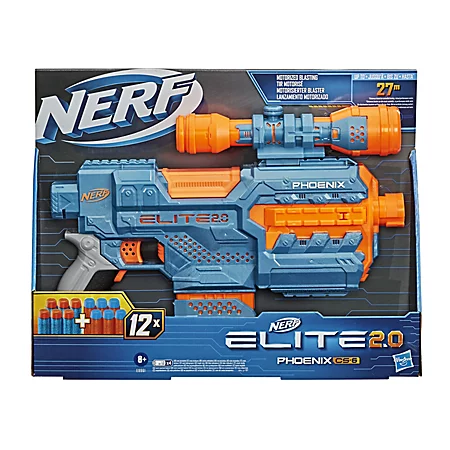 Die Phoenix steht in der Tradition der Stryfe, einem der beliebtesten Blaster von NERF. Mit jeden Zug am Abzug wird ein Dart zwischen die Flywheels befördert, die ihn auf die Mündungsgeschwindigkeit bringen. Ein kleiner Knopf unter dem Abzug bring die Schwungräder im Blaster auf Touren, sodass sie nur laufen, wenn sie gebraucht werden. Die NERF Elite 2.0 Phoenix ist ein guter Allrounder und kann dank Aufnahmen für Schulterstützen und Laufverlängerungen vielseitig angepasst und erweitert werden.