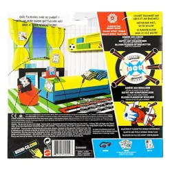 Die Zielscheibe kann entweder aufgehängt oder durch den ausklappbaren Standfuß aufgestellt werden. Drei 1,5V AA werden zum Betrieb benötigt (nicht enthalten).