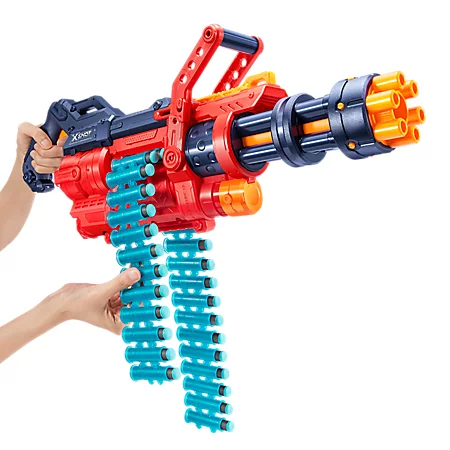 Der X-Shot Excel Omega ist der ultimative Blaster, auf den Du gewartet hast. Du kannst deine Gegner mit der Einzelschussfunktion aus bis zu 27 m Entfernung vernichten. Wenn die Hitze des Gefechts zunimmt, entfessele die Power des 30-Pfeile-Gürtels mit Slam-Fire und schalten die Feinde mit einem Inferno von fliegenden Pfeilen aus. Im Slam-Fire-Modus kannst du bis zu 4 Darts pro Sekunde abfeuern und zusehen, wie dein automatisch rotierender Lauf unsere preisgekrönten X-Shot-Darts freisetzt. Wenn du deinen Dartgürtel leer hast, füllst du ihn einfach mit den 98 Darts auf, die in diesem Blaster enthalten sind, und schon kann es wieder losgehen!